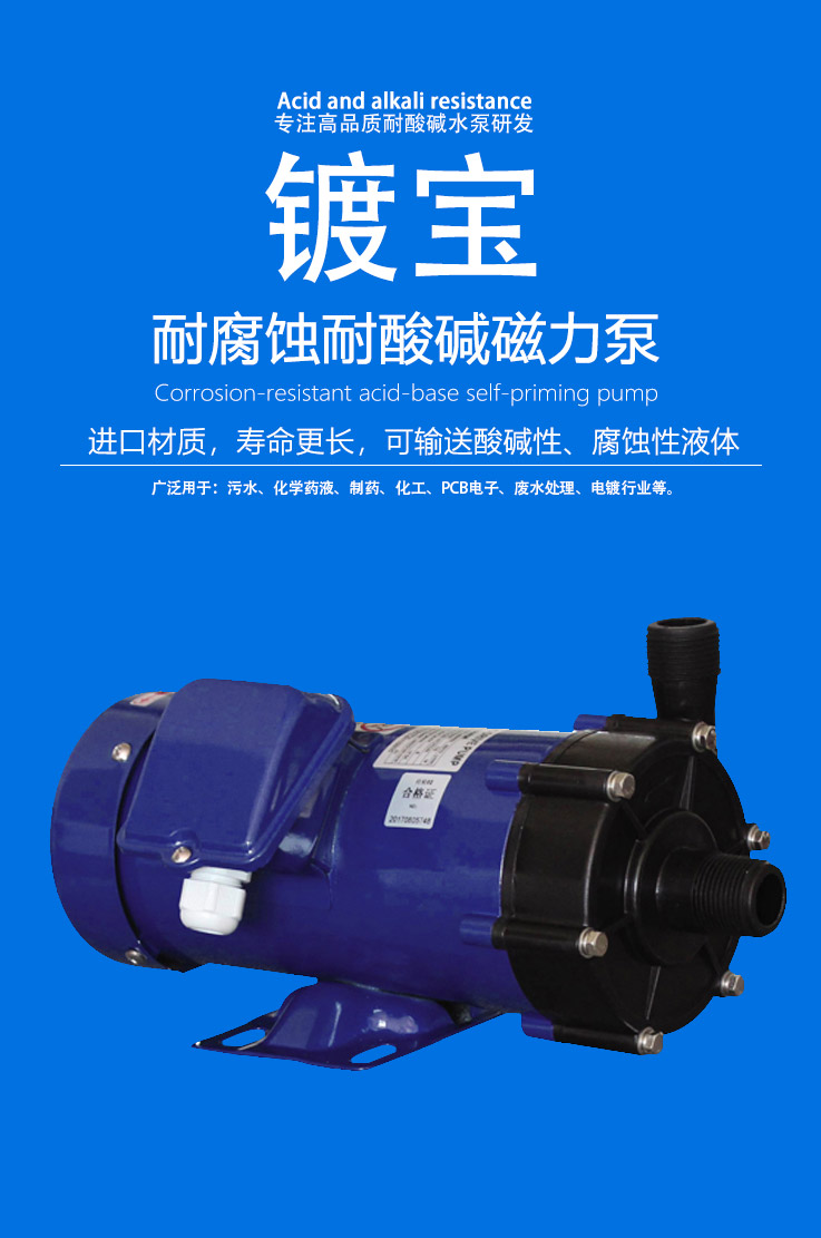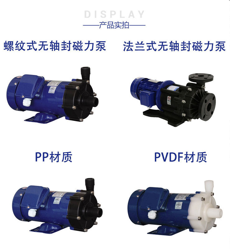 MD系列磁力泵结构小巧,防漏, 在各个行业广泛应用,以其耐腐蚀性和耐用性而拥有广大用户的赞誉。主要材质使用FRPP、PVDF ETFE ,可以用来输送多种腐蚀性的液体。MD系列因其结构小巧,非常适用于过滤、喷淋、清洗、蚀刻等各种表面处理相关工艺。