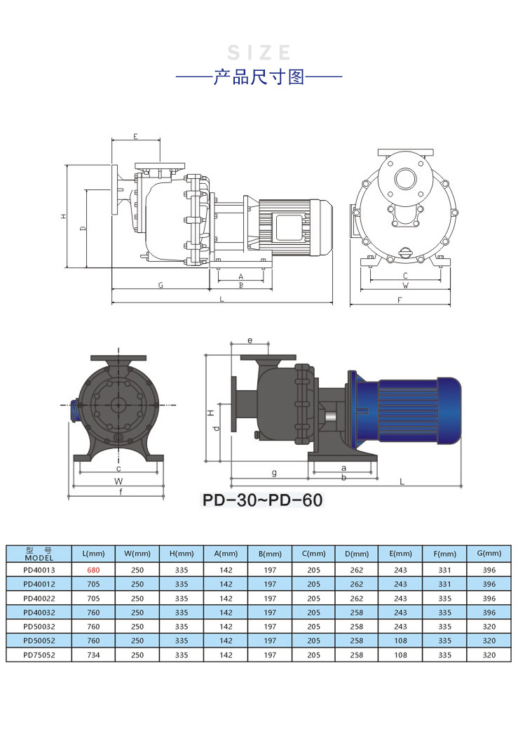 |泵体材质:PD-FRPP PDK-PVDF